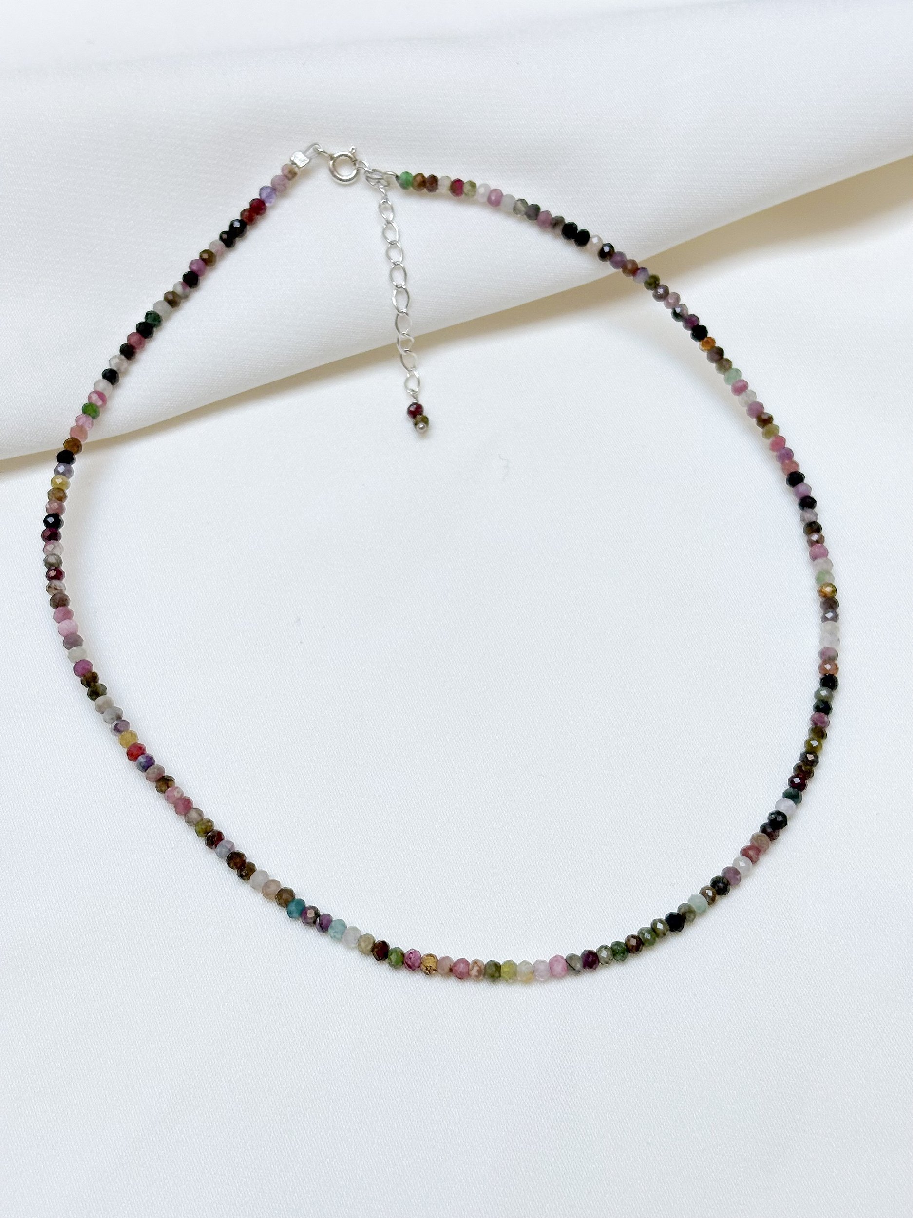 Gargantilha Fio Multifacetado Turmalina Melancia Prata 925