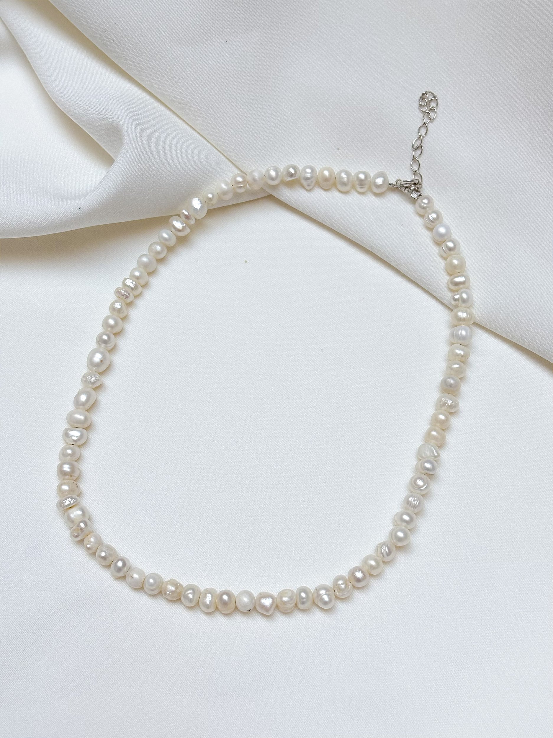 Gargantilha Fio Pérola Batata e Prata 925
