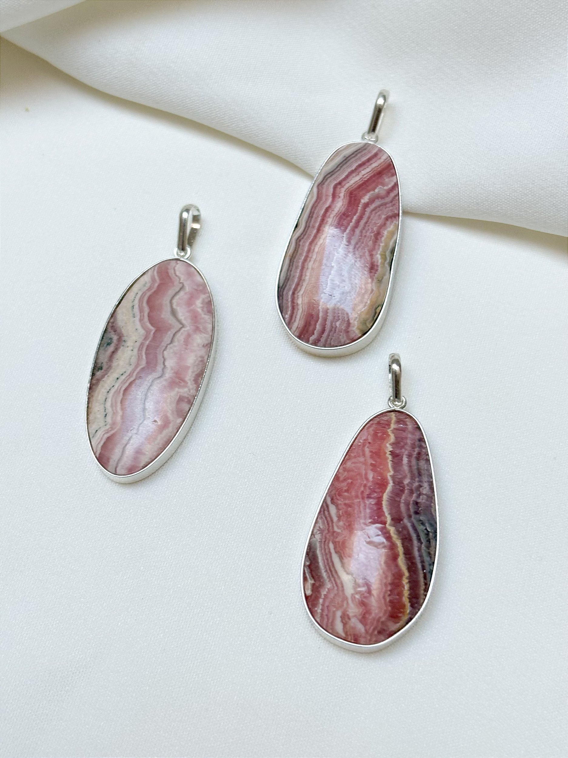 O Pingente Rodocrosita Oval Prata 925 encanta pelo tom rosa suave e brilho natural da pedra. Seu formato oval (entre 4x2cm e 3x2cm) exalta a delicadeza e o equilíbrio, ideal para composições sofisticadas e cheias de significado.